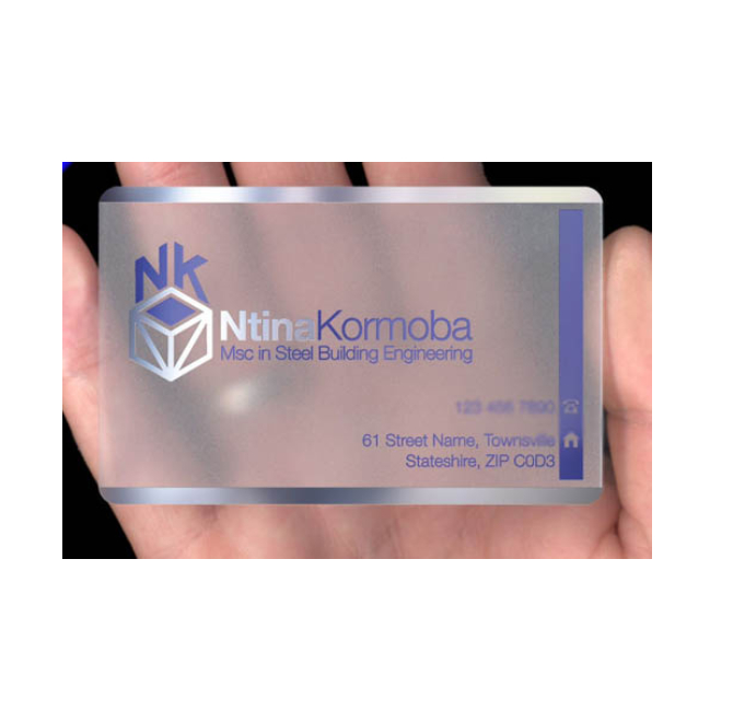Transparent Plastic Materials: Materials like clear PVC or PETG are used for printing clear cards.